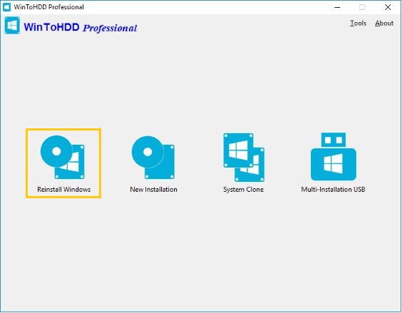 نصب ویندوز با نرم ‏افزار WinToHDD بسیار ساده و راحت می باشد، به اینصورت که برای آن یک رابط کاربری ساده ومستقیم با تنها سه دکمه در نظر گرفته شده است:
