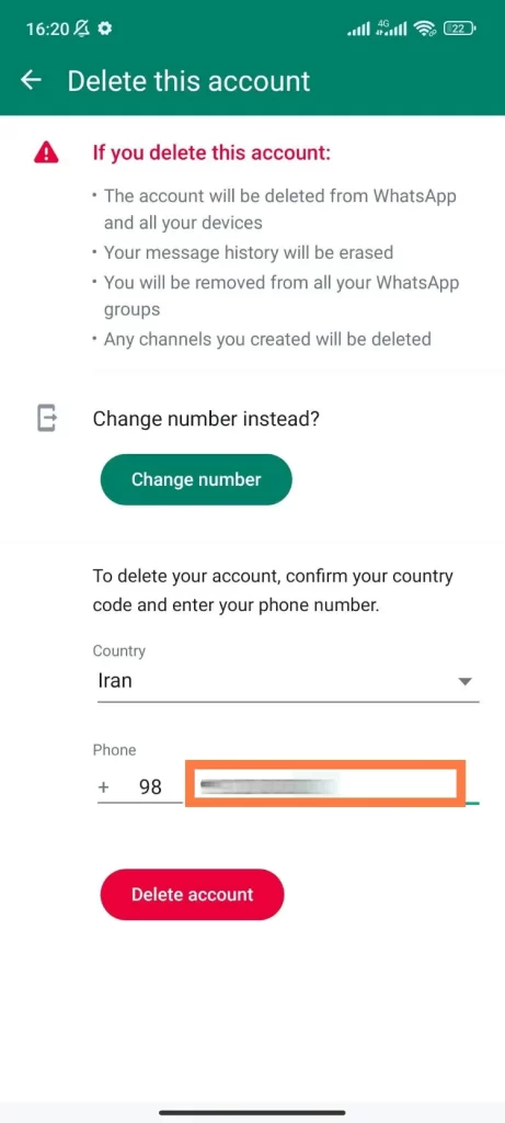 اکانت واتساپ شما بهطور کامل حذف میشود