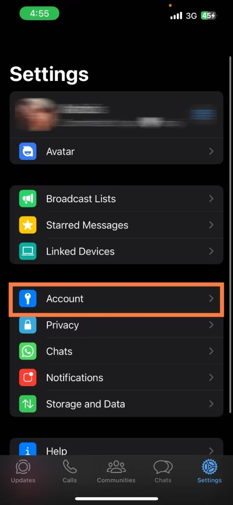 اگر از واتساپ روی گوشی آیفون یا تبلت اپل استفاده میکنید برای حذف اکانت خود باید مراحل زیر را دنبال کنید:
