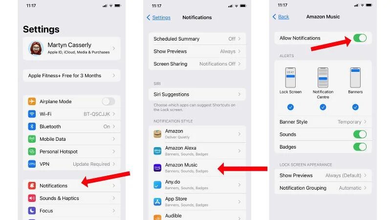 Settings → Apps → [اپلیکیشن موردنظر] → Notifications.